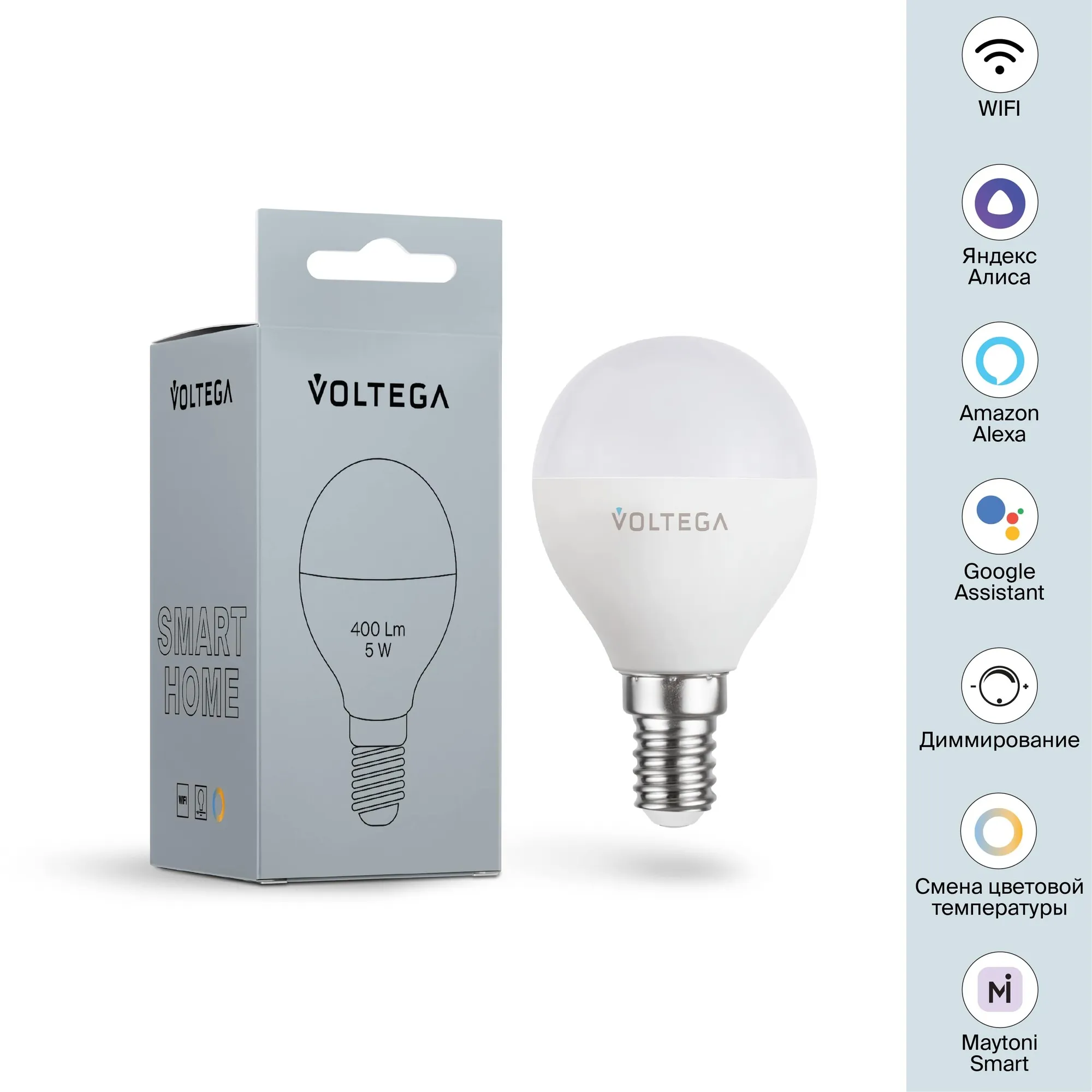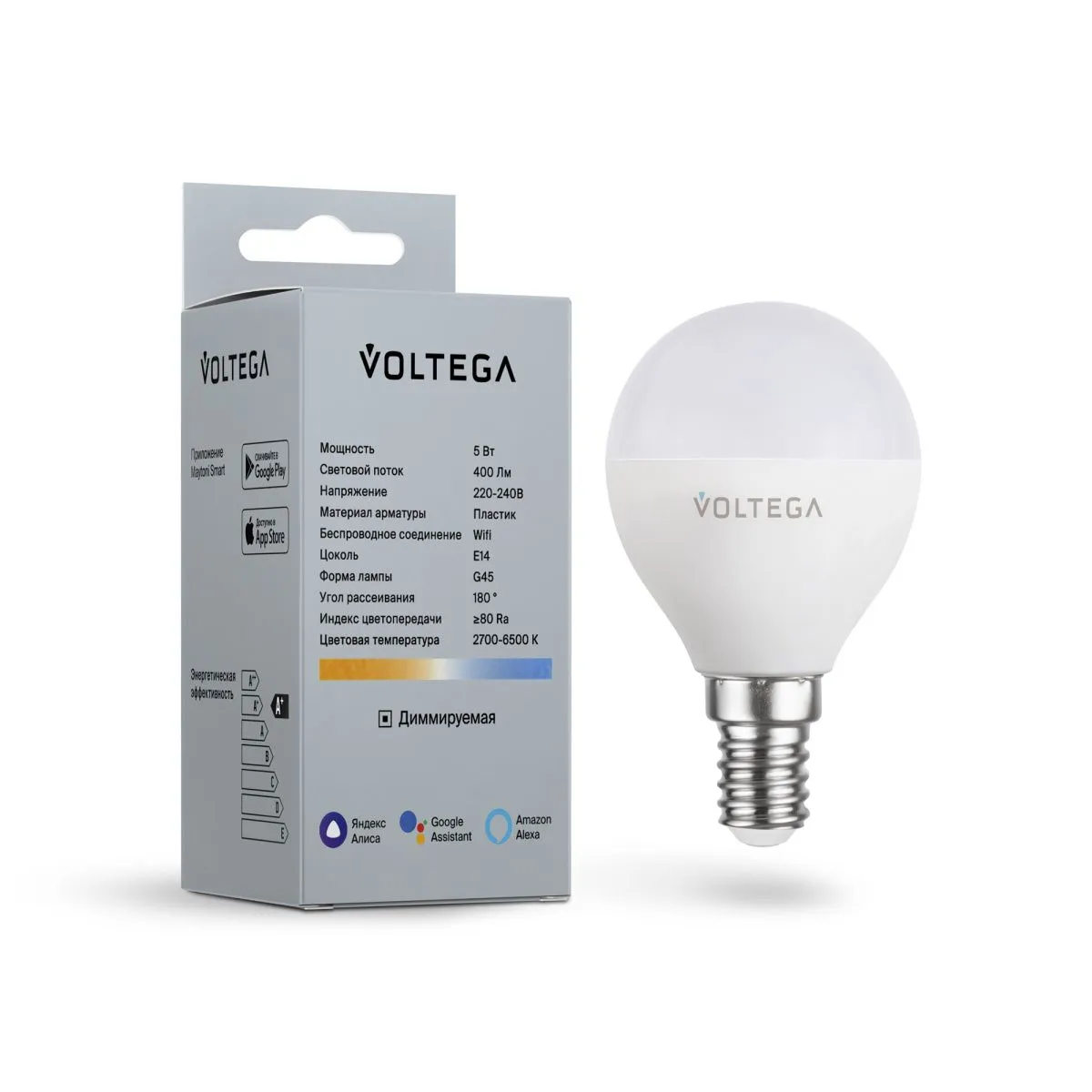 Лампа светодиодная диммируемая Voltega E14 5W 2700К матовая VG-G45E14cct-WIFI-5W 2428 купить в Балашихе по лучшей цене