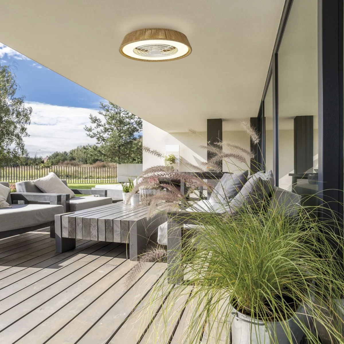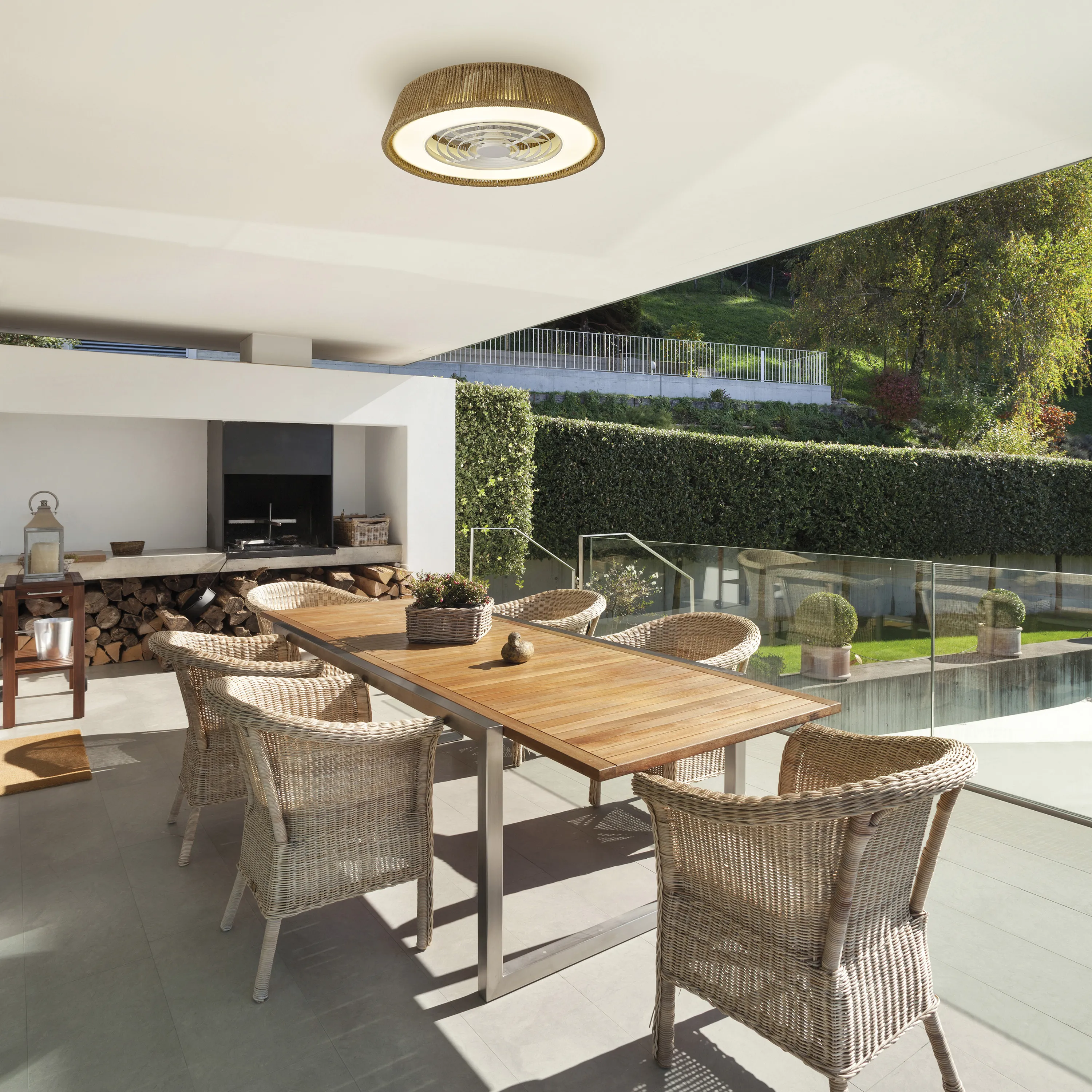 Благодаря возможности устанавливать различные интенсивности света и вентиляции, светильник POLINESIA может быть размещен в больших помещениях, таких как гостиная или офис, кухня или игровая з