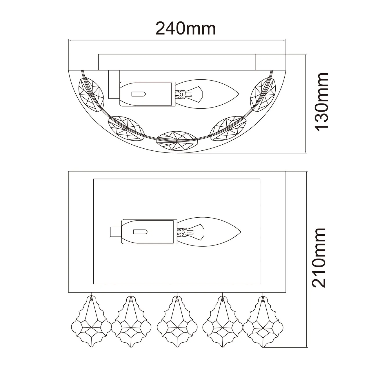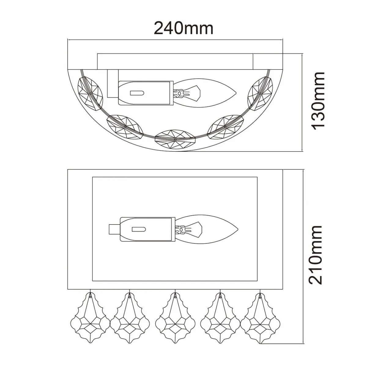 Основание/металл/хром Плафон/органза/белый Декор/хрусталь/прозрачный